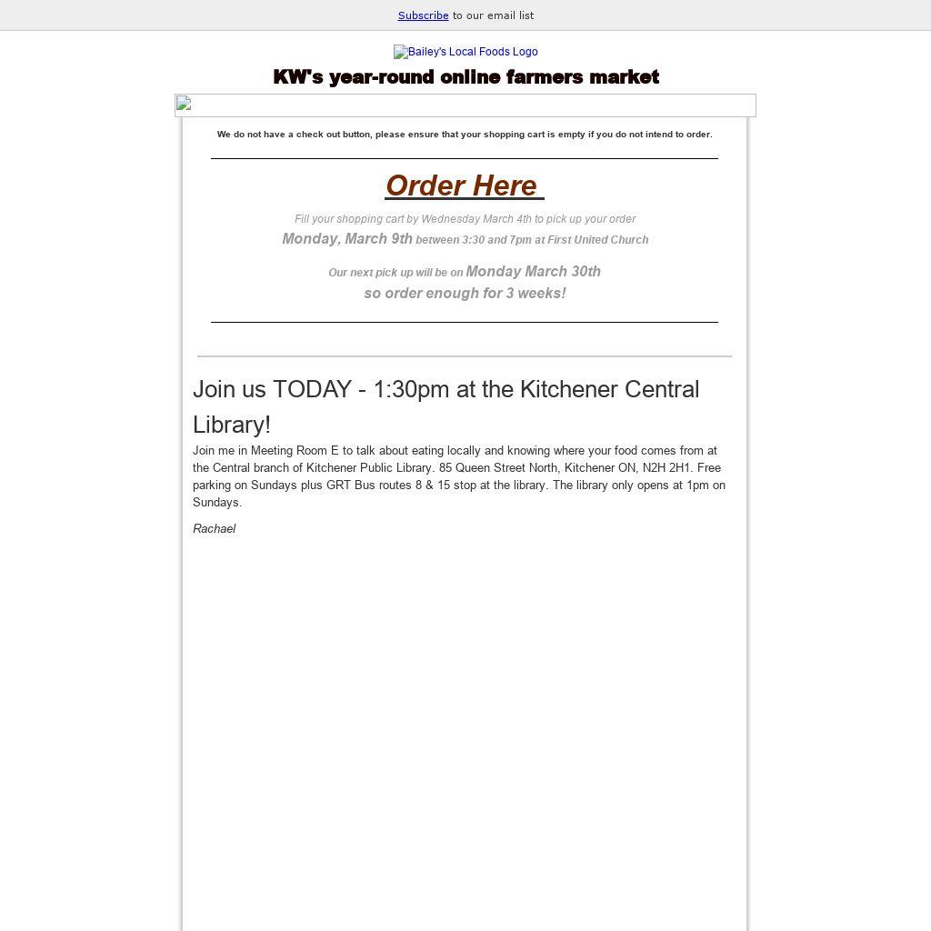 Join me in Meeting Room E to talk about eating locally and knowing where your food comes from at the Central branch of Kitchener Public Library. 85 Queen Street North, Kitchener ON, N2H 2H1. Free parking on Sundays plus GRT Bus routes 8 & 15 stop at the library. The library only opens at 1pm on Sundays.