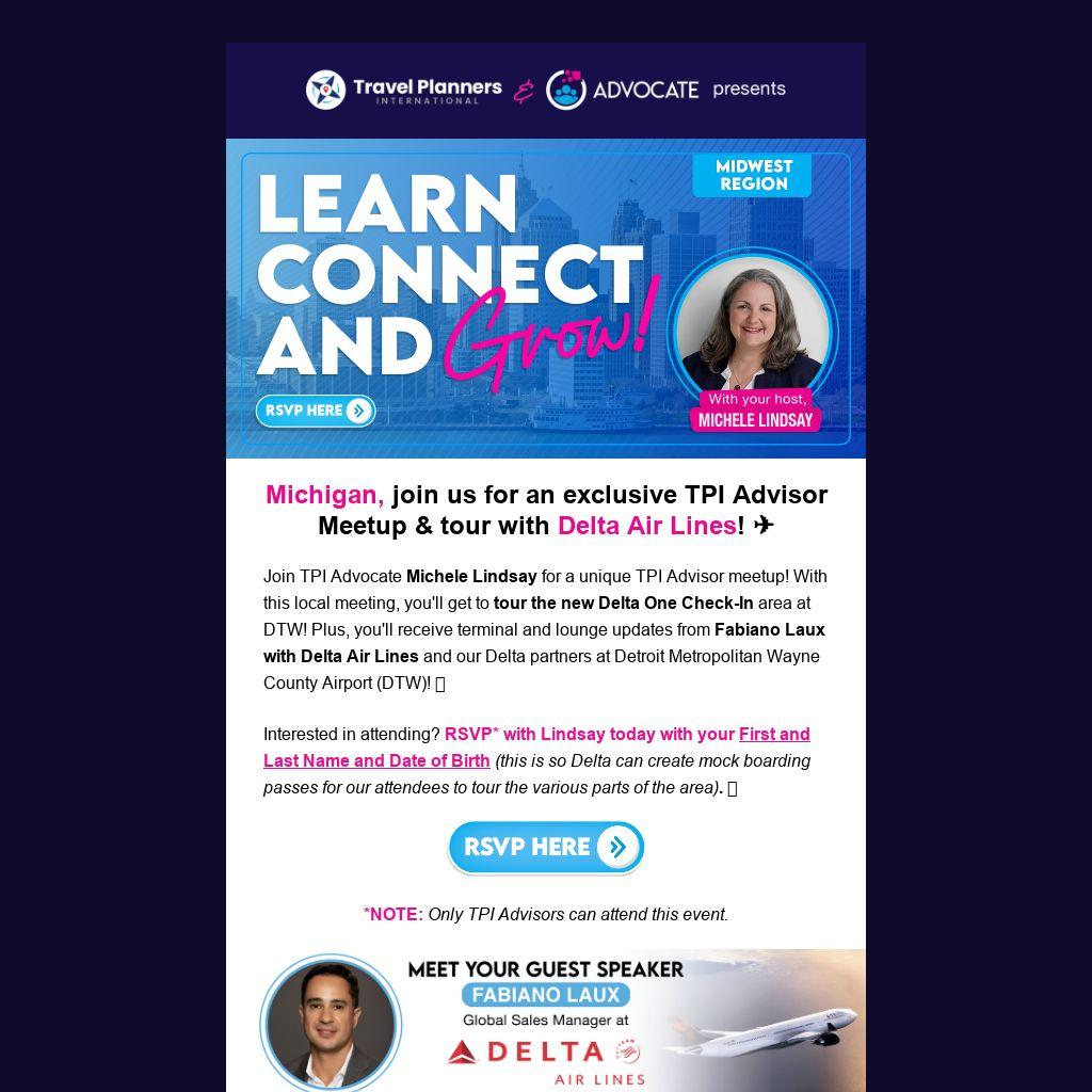 Michigan, join us for an exclusive TPI Advisor Meetup & tour with Delta Air Lines! ✈️