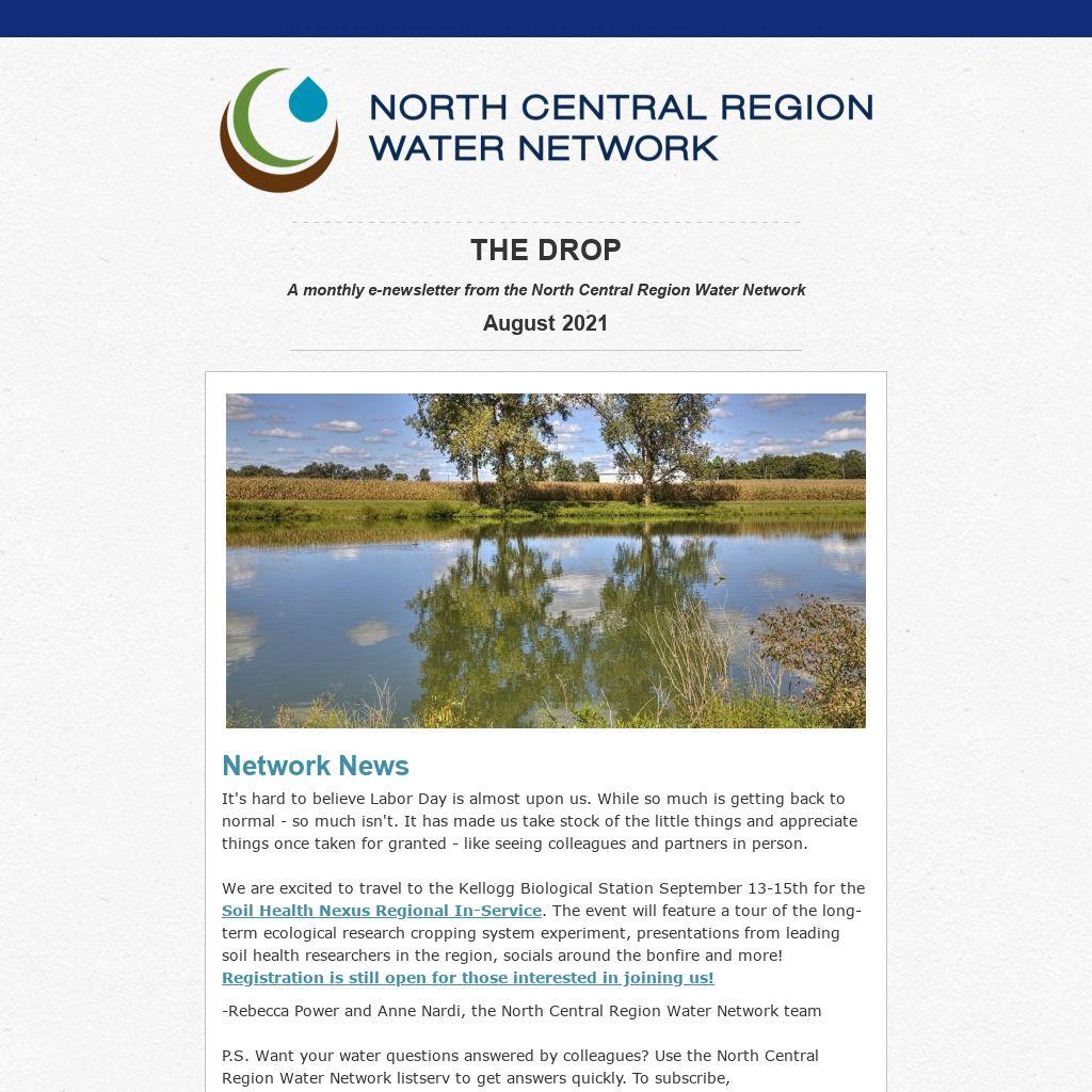 P.S. Want your water questions answered by colleagues? Use the North Central Region Water Network listserv to get answers quickly. To subscribe, email ncrwater+subscribe@g-groups.wisc.edu.