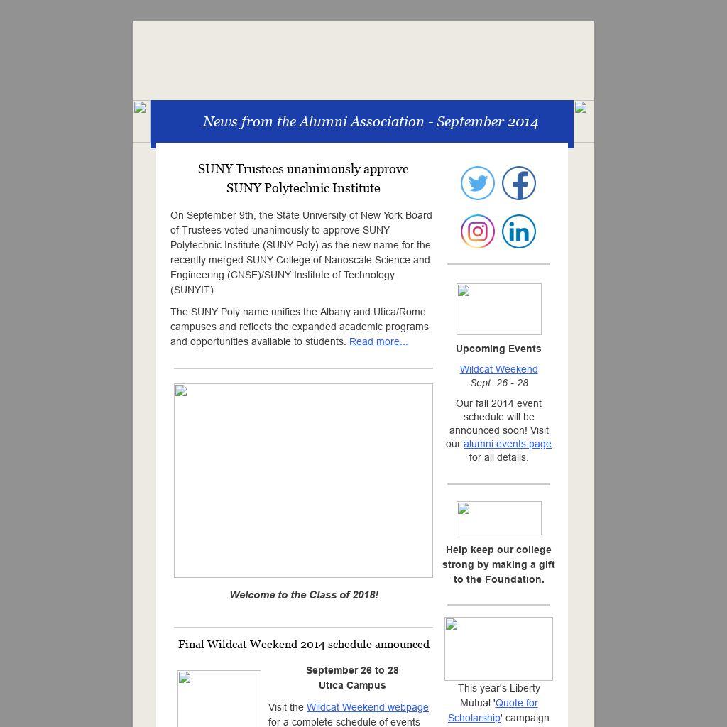 The SUNY Poly name unifies the Albany and Utica/Rome campuses and reflects the expanded academic programs and opportunities available to students. Read more...