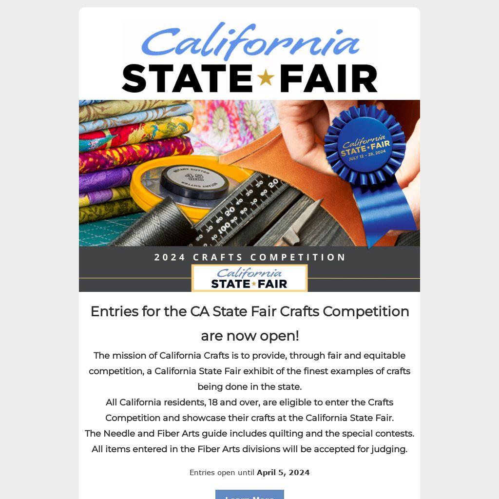 Entries for the CA State Fair Crafts Competition are now open!