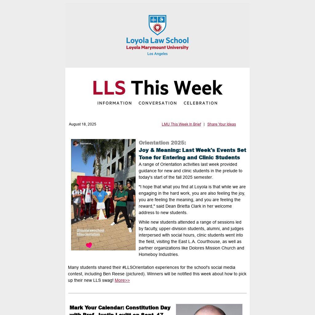Official law school events are noted above or summarized in the space below. Student-organization and related events are listed on the LEO Engage events calendar (select LLS under Branches). Questions? Email us!