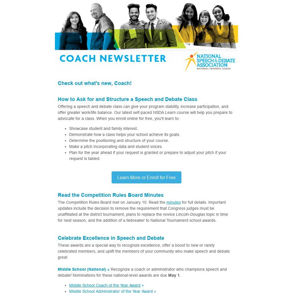 Middle School (National) » Recognize a coach or administrator who champions speech and debate! Nominations for these national-level awards are due May 1.