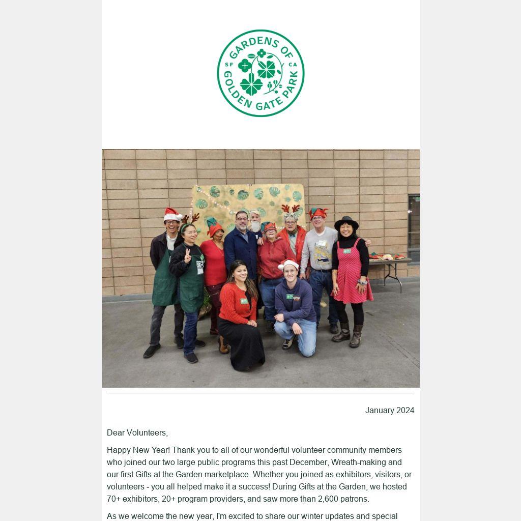 As we welcome the new year, I'm excited to share our winter updates and special upcoming volunteer opportunities such as the MISTER G event, Garden Guides Training, piloting Green Team Group Days, and Lunar New Year!