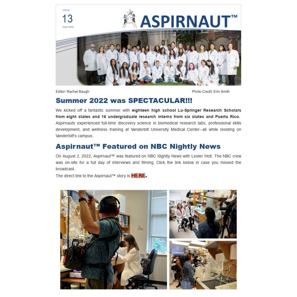 On August 2, 2022, Aspirnaut™ was featured on NBC Nightly News with Lester Holt. The NBC crew was on-site for a full day of interviews and filming. Click the link below in case you missed the broadcast.