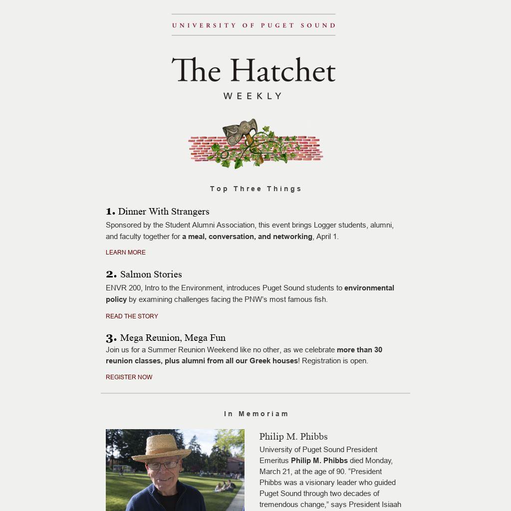 University of Puget Sound President Emeritus Philip M. Phibbs died Monday, March 21, at the age of 90. “President Phibbs was a visionary leader who guided Puget Sound through two decades of tremendous change,” says President Isiaah Crawford. “There is no way to adequately express how influential he was in shaping the university we know and love today.” Phibbs served as Puget Sound’s 11th president from 1973 to 1992, a period during which the college refocused efforts to develop and provide an academically rigorous liberal arts education. Widely respected for his work at Puget Sound and in Tacoma, including his roles in founding Tacoma’s Museum of Glass and the revival of the Blue Mouse Theater, Phibbs was an active and enthusiastic community advocate.