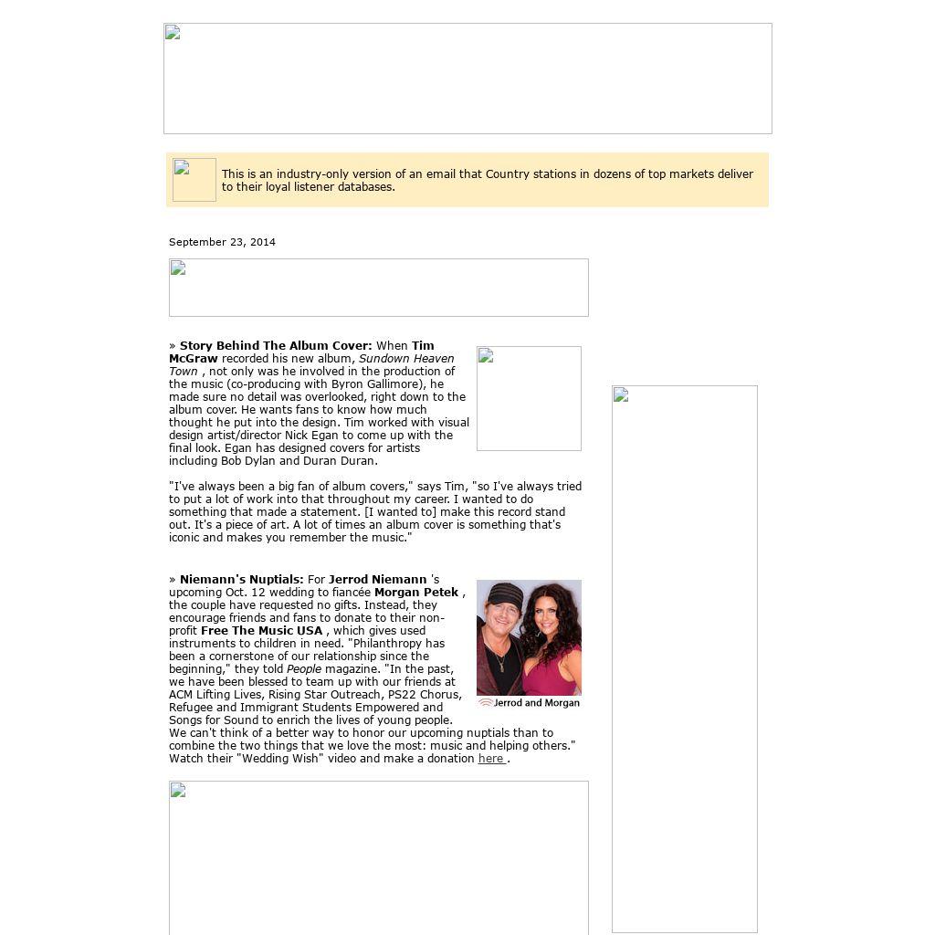 Garth Brooks has broken his 1997 personal record – 56,243 – for tickets sold in Florida. Brooks' 2014 dates at the Jacksonville Veterans Memorial Arena – Oct. 10, 12, 16-18 – have already surpassed that number and are still selling. Get yours here. Birthdays Tuesday (9/23): Don Herron (BR549), Julio Iglesias, the late Ray Charles. Thursday (9/25): Greg Bates, Joe Sun, the late Royce Kendall. On TV Wednesday (9/24): Kenny Chesney, Today (NBC) and The Tonight Show Starring Jimmy Fallon (NBC); Sam Hunt, Late Night With Seth Myers (NBC). This Week's Album Releases Sept. 23 Kenny Chesney The Big Revival Chesney took 2014 off the road to concentrate on making this album. He produced it with longtime collaborator Buddy Cannon and it includes the first single "American Kids." Lee Ann Womack The Way I'm Livin' Womack went old school in the studio for this record. Many of her vocals were recorded live on the floor with the band. Of note: the first single and title cut was written by Adam Wright of The Wrights. Big & Rich Gravity As they celebrate their 10th anniversary as a duo, Big Kenny and John Rich release their fifth studio album. It features the first single "Look At You" and "Lovin' Lately" with special guest Tim McGraw. Upcoming Album Releases Sept. 30 Lady Antebellum 747 Blake Shelton Bringing Back The Sunshine Marty Stuart Saturday Night & Sunday Morning Ricky Skaggs and Sharon White Hearts Like Ours