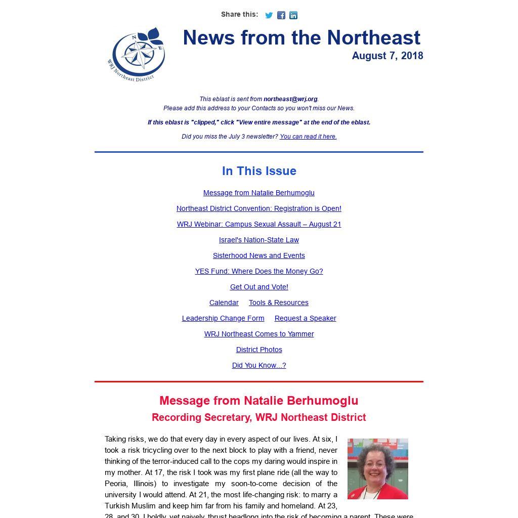 This eblast is sent from northeast@wrj.org.