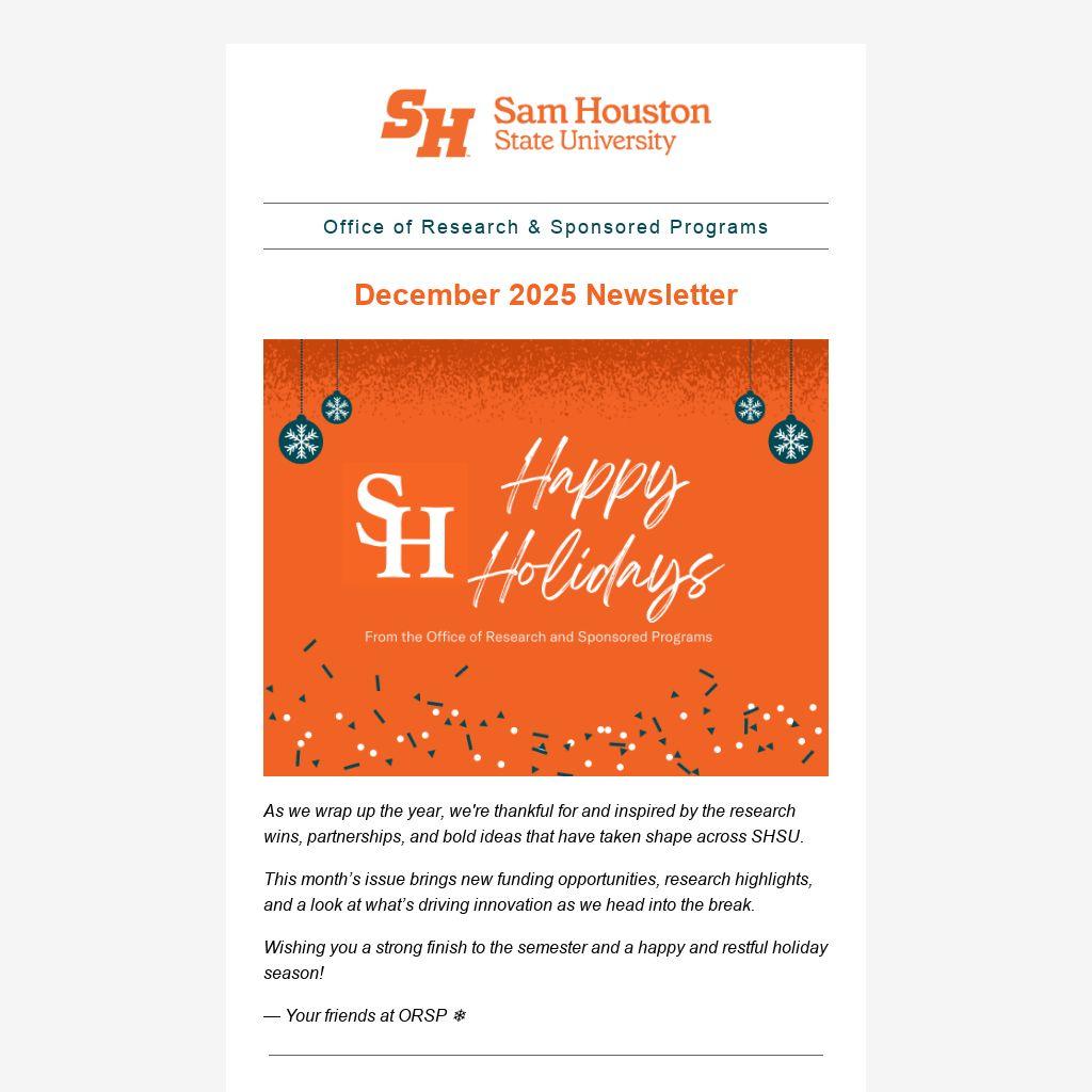As we wrap up the year, we're thankful for and inspired by the research wins, partnerships, and bold ideas that have taken shape across SHSU.