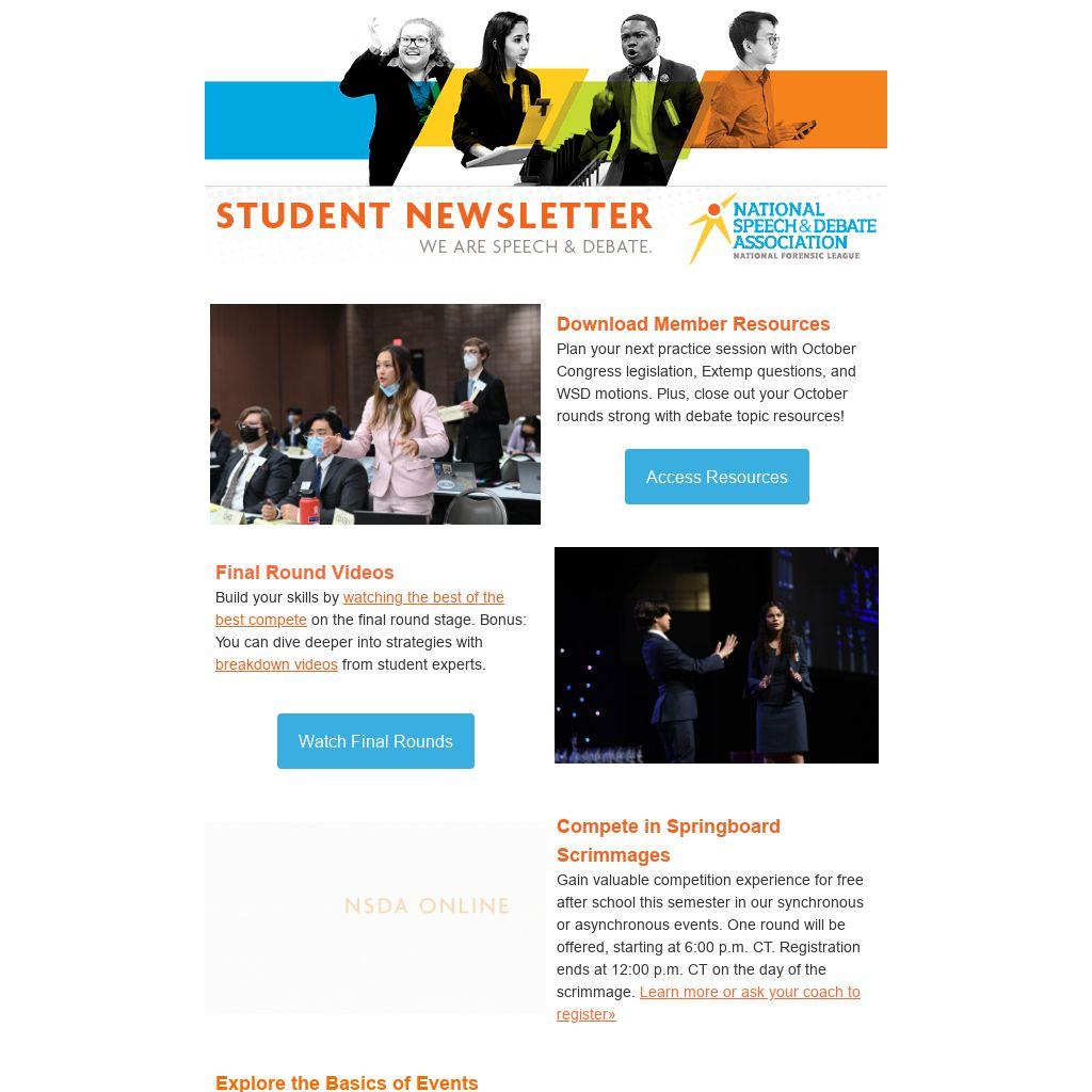 Thank you for being a student member of the NSDA. We love celebrating your hard work in and out of rounds, so we're shouting you out all week long! Stay tuned to our social media channels for new exclusive content, performances, giveaways, and contests this week. Not a member yet? Join today! »