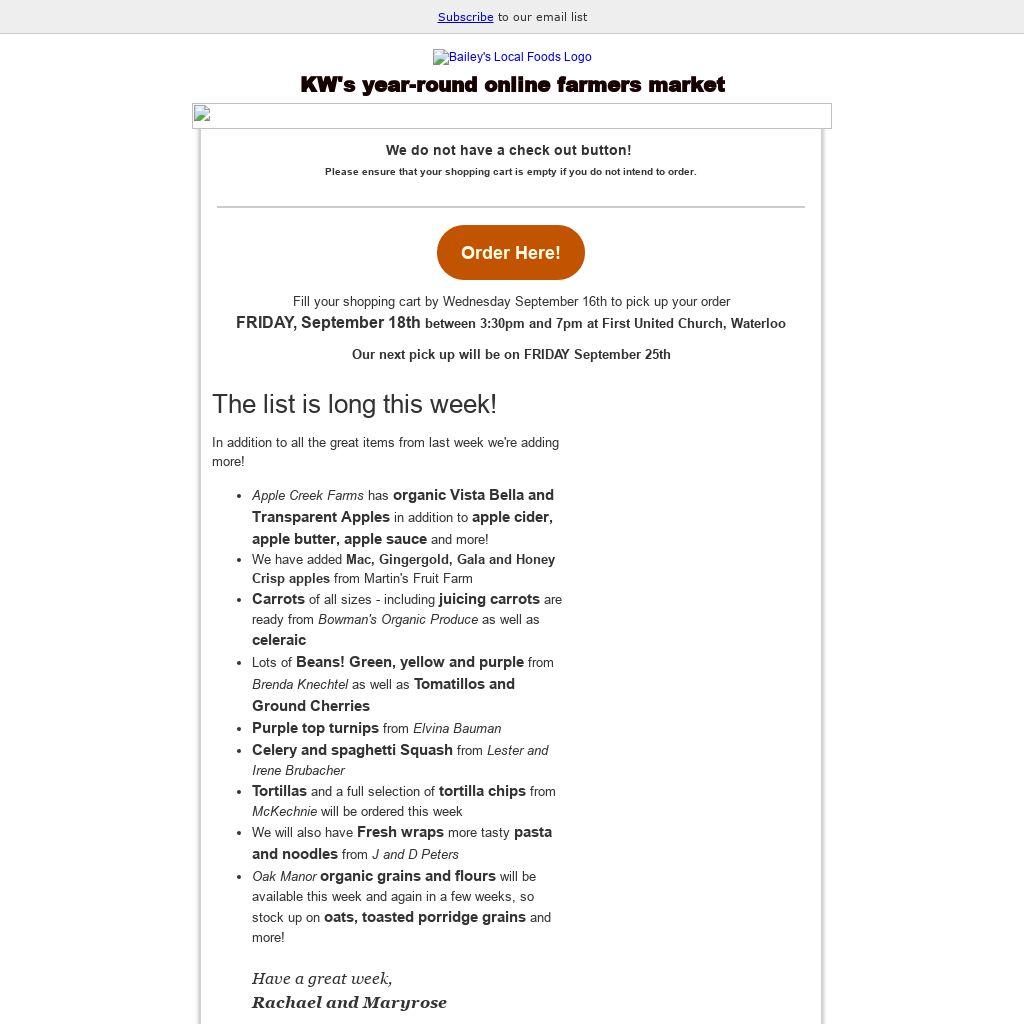 | Fill your shopping cart by Wednesday September 16th to pick up your order
