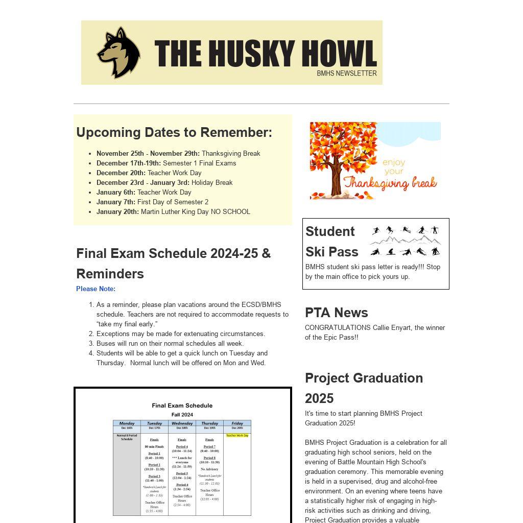 - As a reminder, please plan vacations around the ECSD/BMHS schedule. Teachers are not required to accommodate requests to “take my final early.”