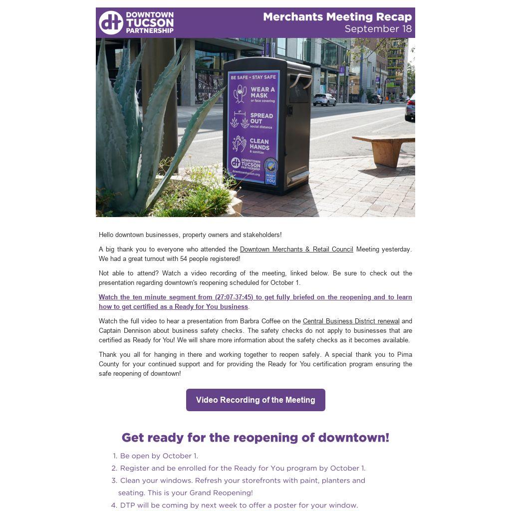 Thank you all for hanging in there and working together to reopen safely. A special thank you to Pima County for your continued support and for providing the Ready for You certification program ensuring the safe reopening of downtown!