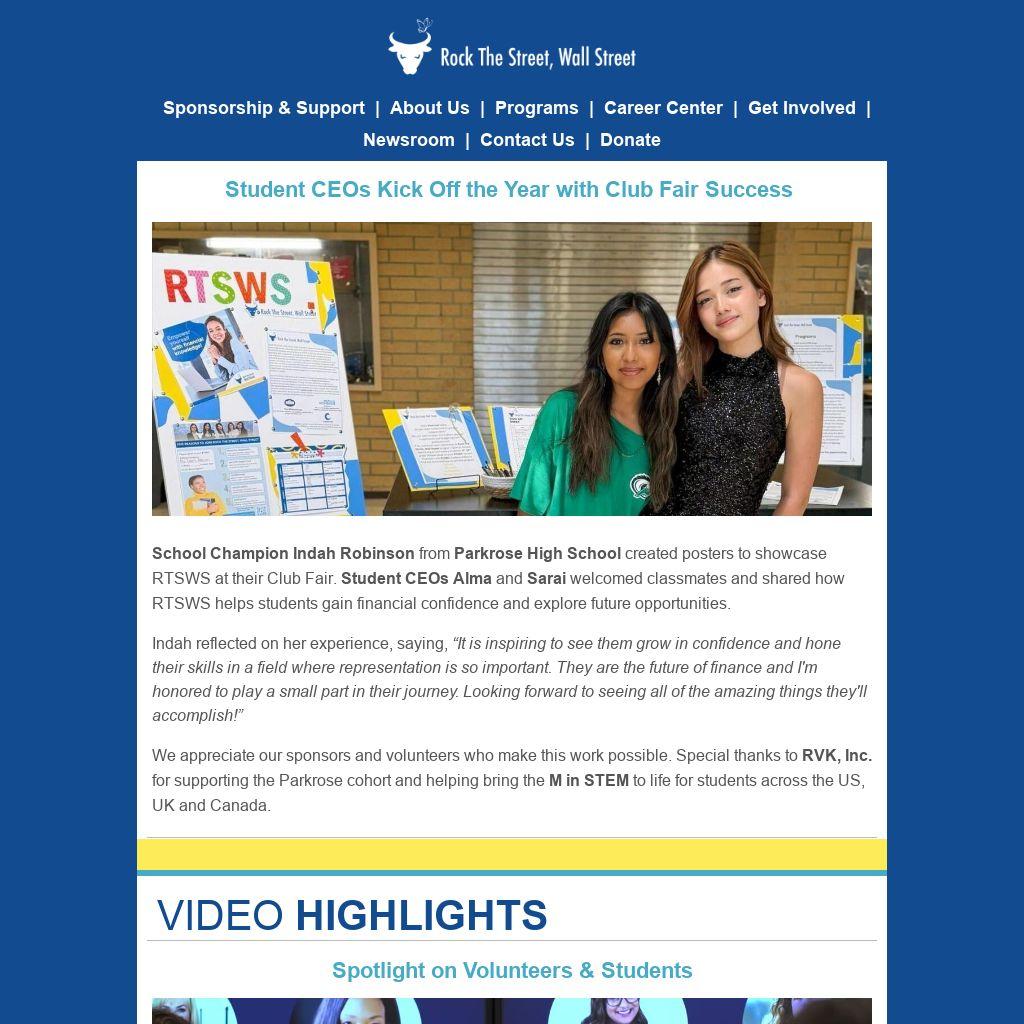 School Champion Indah Robinson from Parkrose High School created posters to showcase RTSWS at their Club Fair. Student CEOs Alma and Sarai welcomed classmates and shared how RTSWS helps students gain financial confidence and explore future opportunities.