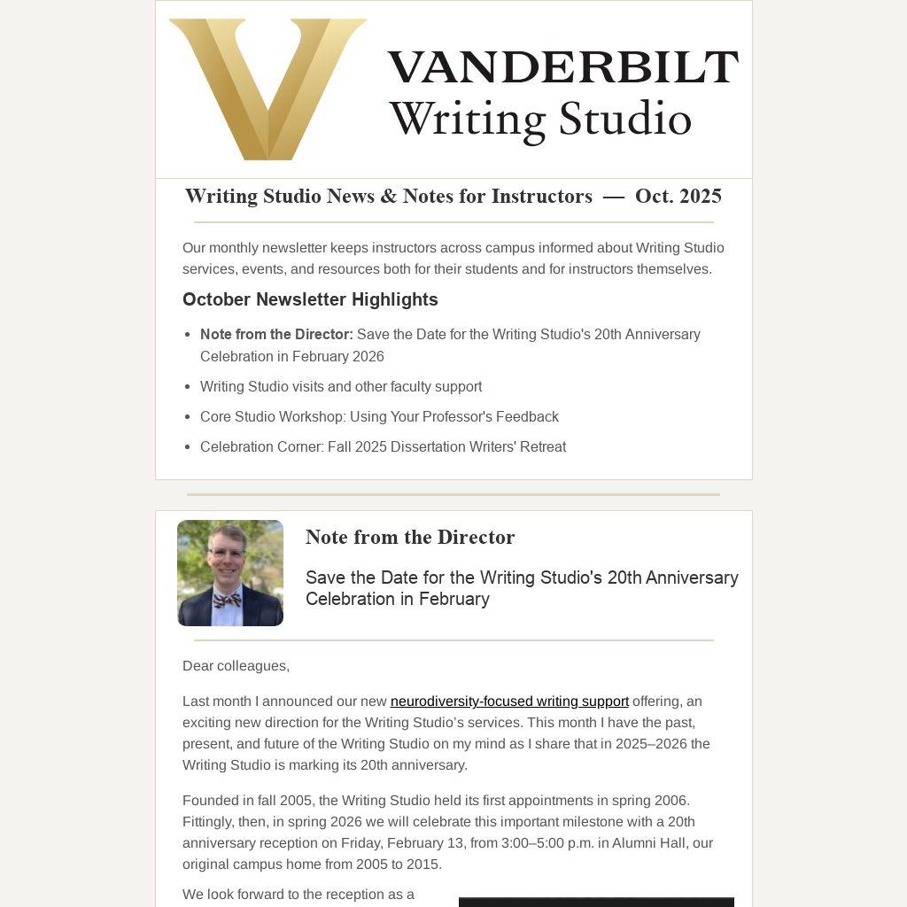 Writing Studio News & Notes for Instructors — Oct. 2025 |