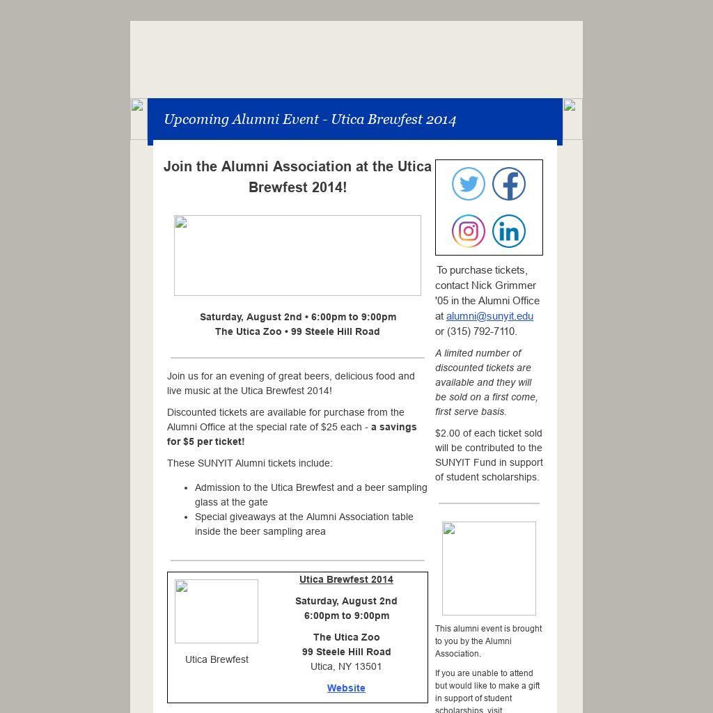 Join us for an evening of great beers, delicious food and live music at the Utica Brewfest 2014!
