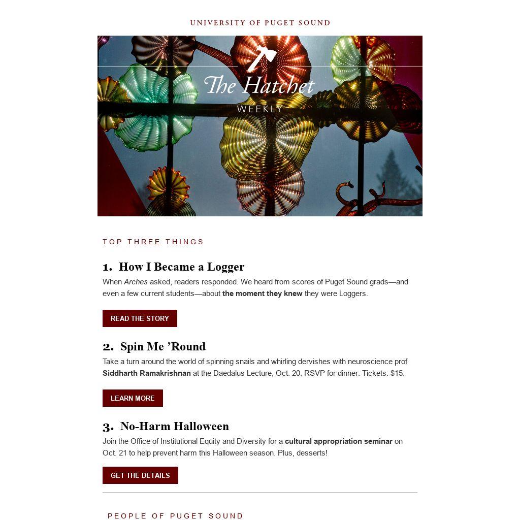 Dating to 1908 (one legend has it that students discovered it in a campus barn), the hatchet soon became a source of school pride and a gift handed down each year from the senior class to the juniors. But tradition soon turned to hijinks, as students plotted repeatedly to steal it, hiding the hatchet (allegedly) over the years behind a radiator in Jones Hall, in a hollowed-out textbook somewhere in Collins Memorial Library, and even off campus, in the attics and closets of Logger grads. A replica, currently on display in Wheelock Student Center, was comissioned in 2006, and shows the inscriptions of class years, beginning with the Class of 1908, that cover both sides of the hatchet. The original, returned to campus in 2008, is in fragile condition and is safely tucked away under lock and key in an undisclosed campus location.