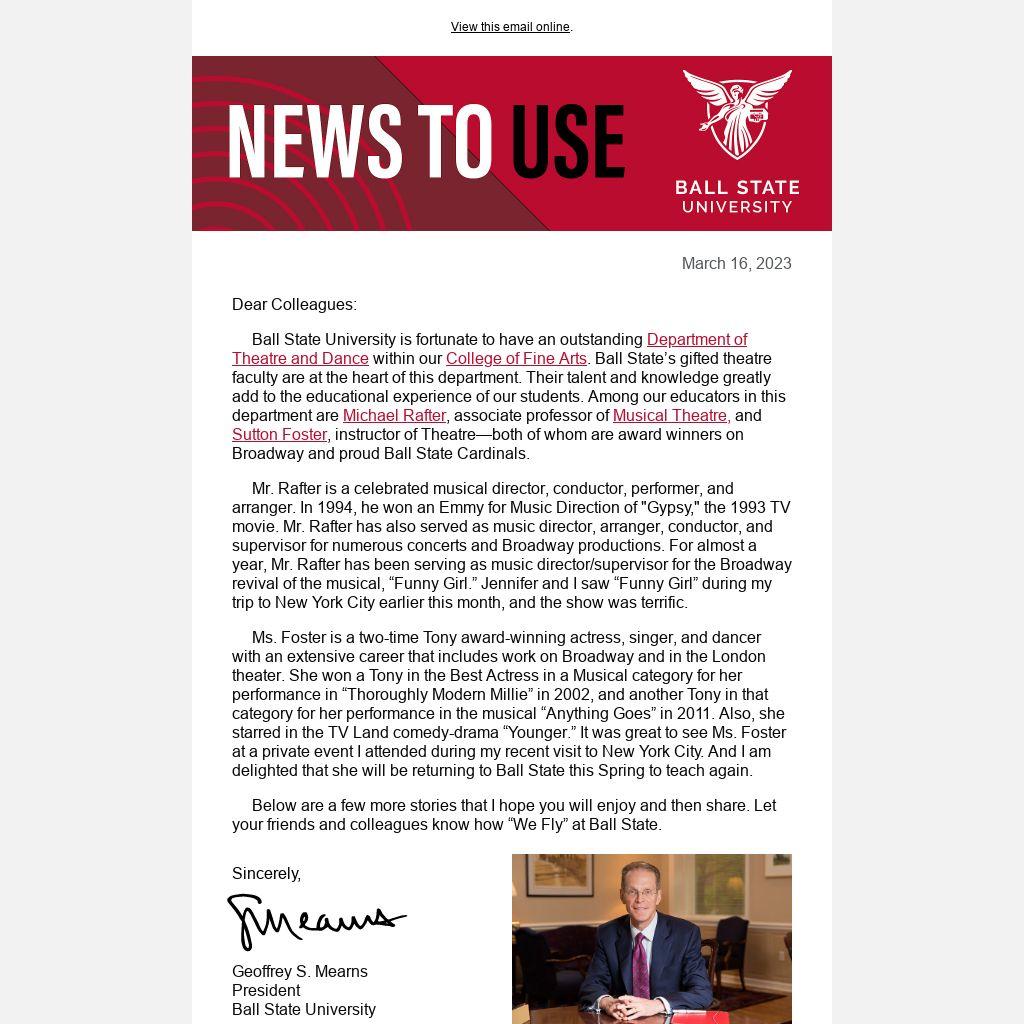 Copyright © 2023 Ball State University, All rights reserved. News and updates from Ball State's president.