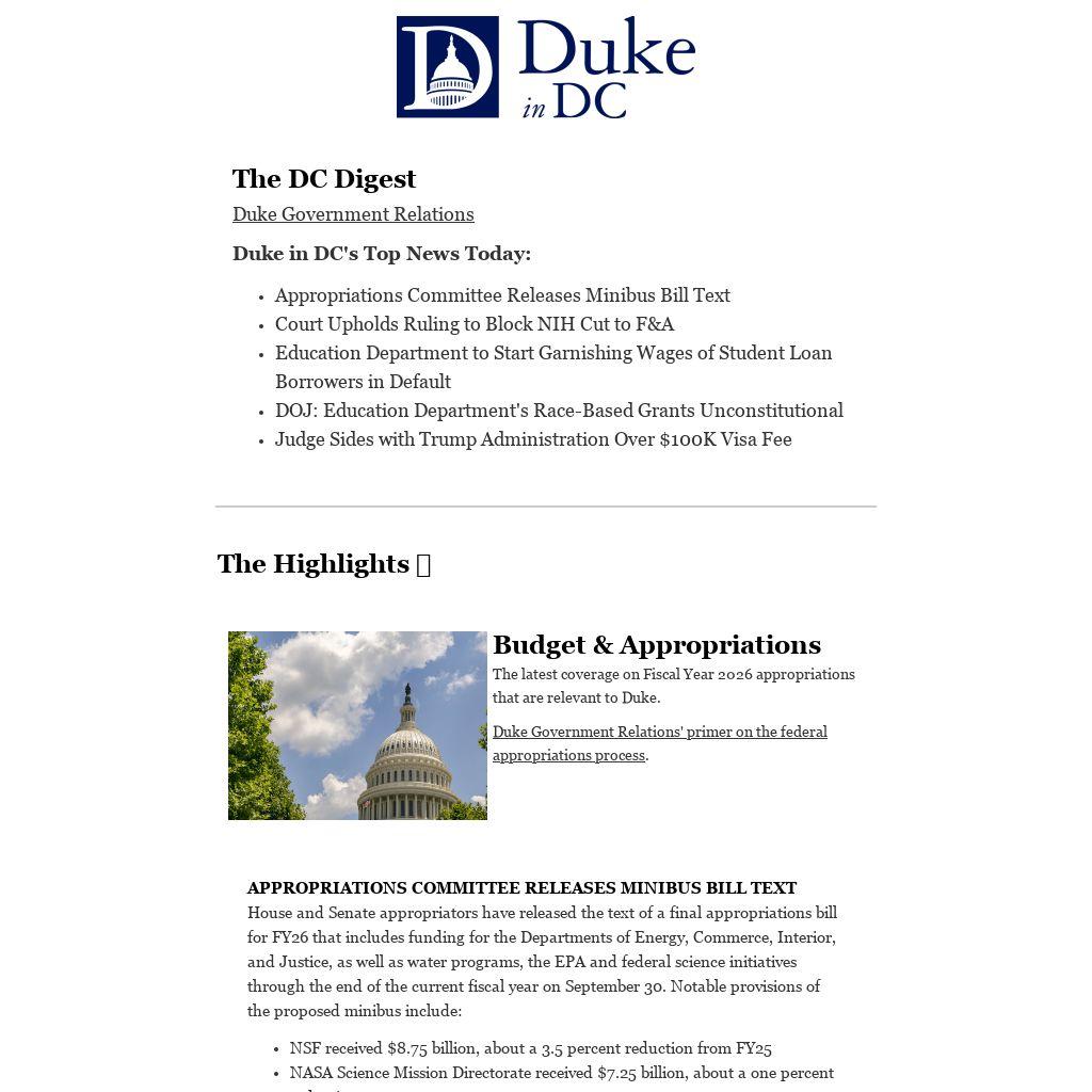 House and Senate appropriators have released the text of a final appropriations bill for FY26 that includes funding for the Departments of Energy, Commerce, Interior, and Justice, as well as water programs, the EPA and federal science initiatives through the end of the current fiscal year on September 30. Notable provisions of the proposed minibus include:Â