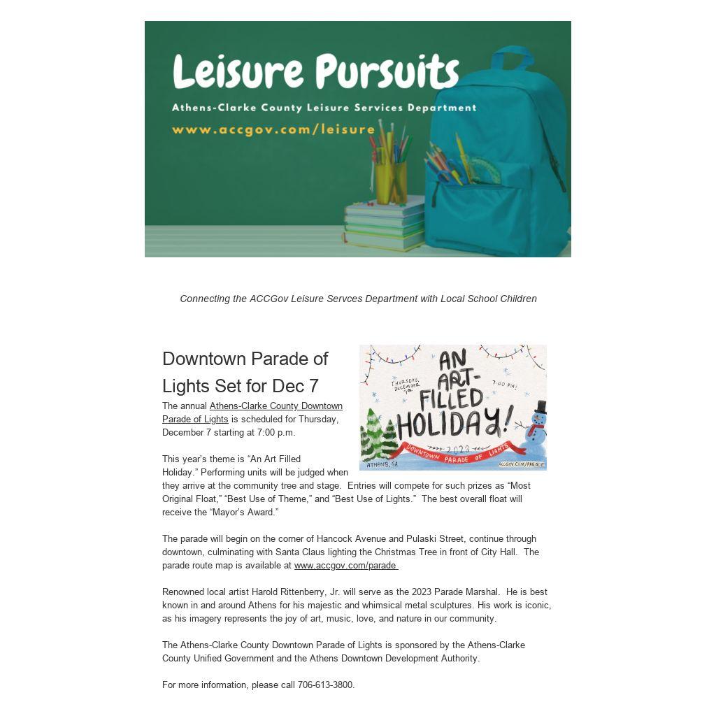 Athens-Clarke County Leisure Services Department facilities will be closed Sunday, December 24 through Tuesday December 26 in observance of the Christmas holiday.
