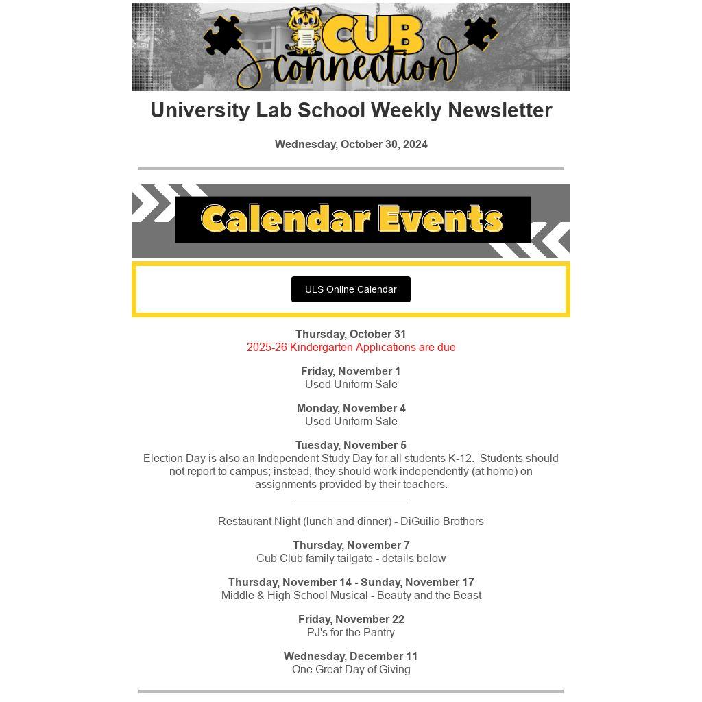 University Lab School Weekly Newsletter |