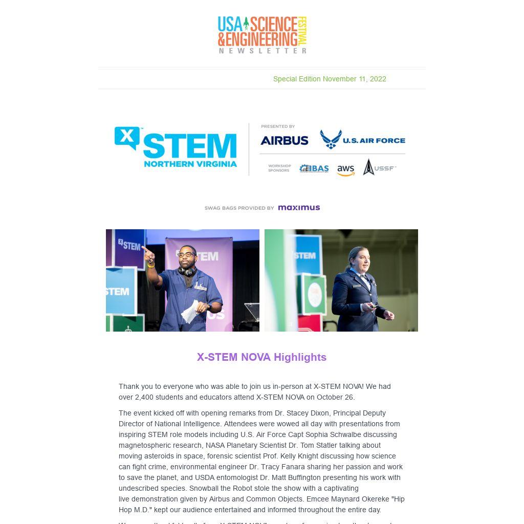 Thank you to everyone who was able to join us in-person at X-STEM NOVA! We had over 2,400 students and educators attend X-STEM NOVA on October 26.