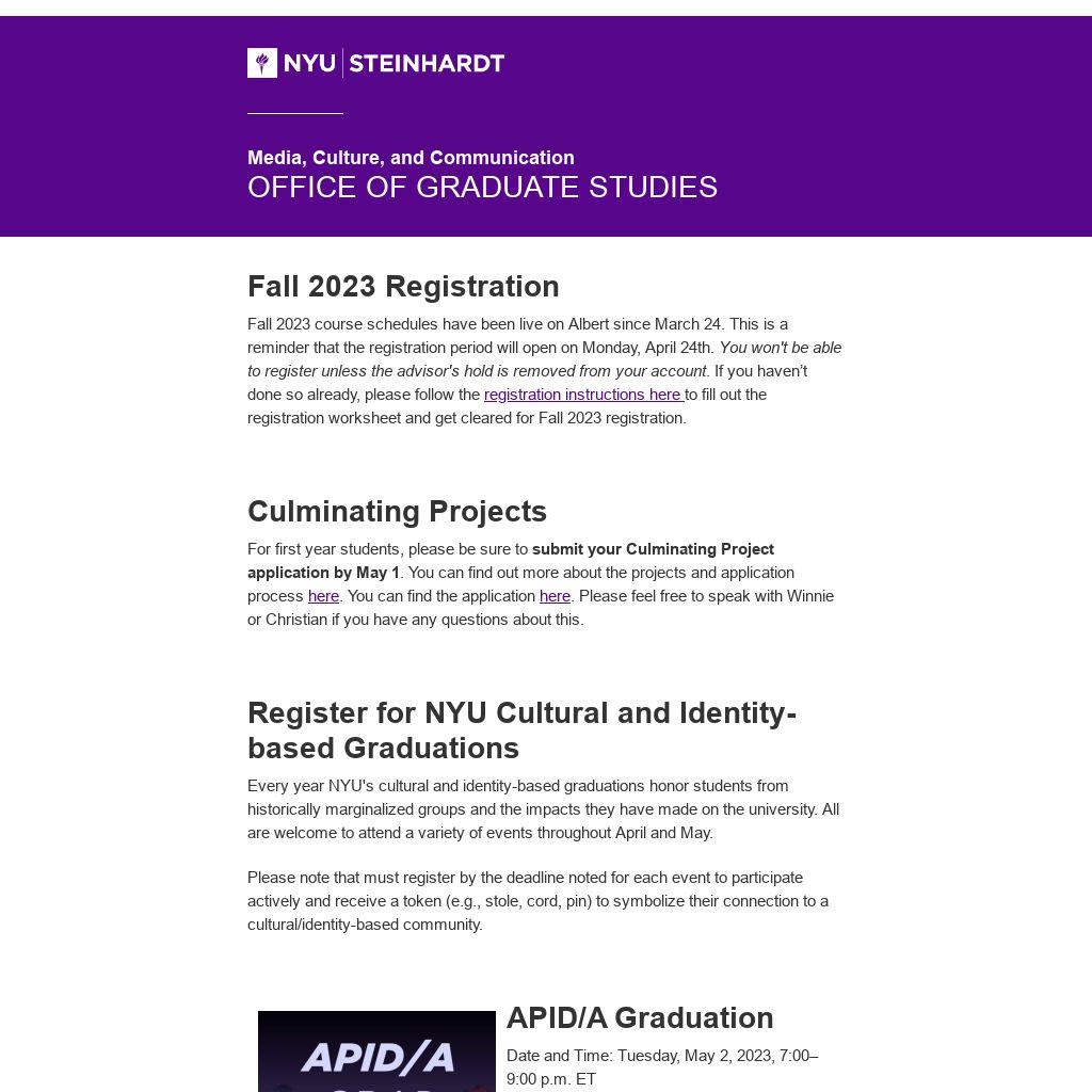 RSVP Link: APID/A Graduation 2023 Registration Link
