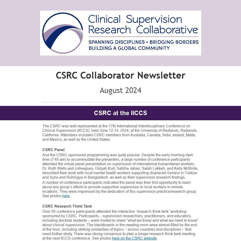 CSRC is grateful to IICCS conference organizers for allowing time and space for our sponsored programming, as well as plenaries, presentations, and round table discussions that inspired ideas for broadening our understanding of effective clinical supervision.