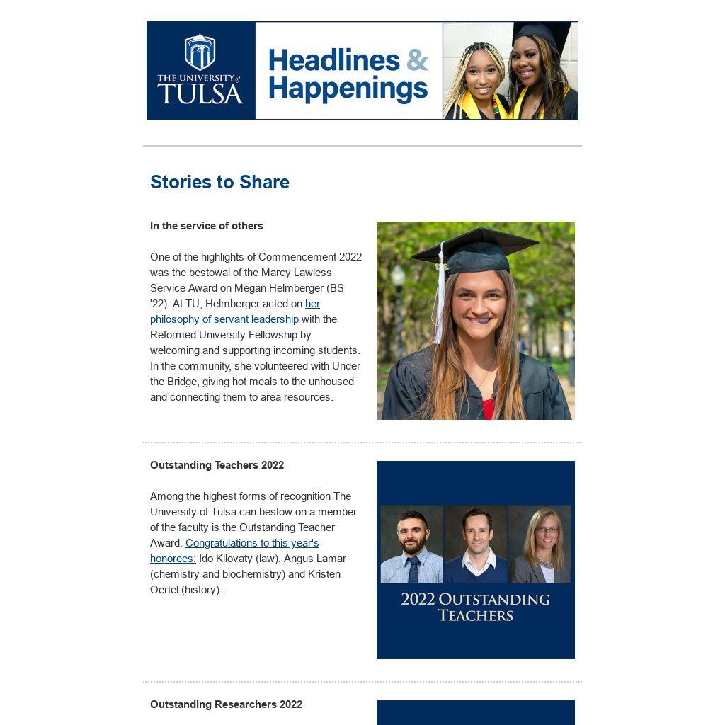 The sun shone brightly this year as our community gathered to celebrate and honor graduates at Countdown to Commencement, the Final Bell Party and the TU Commencement Ceremony.