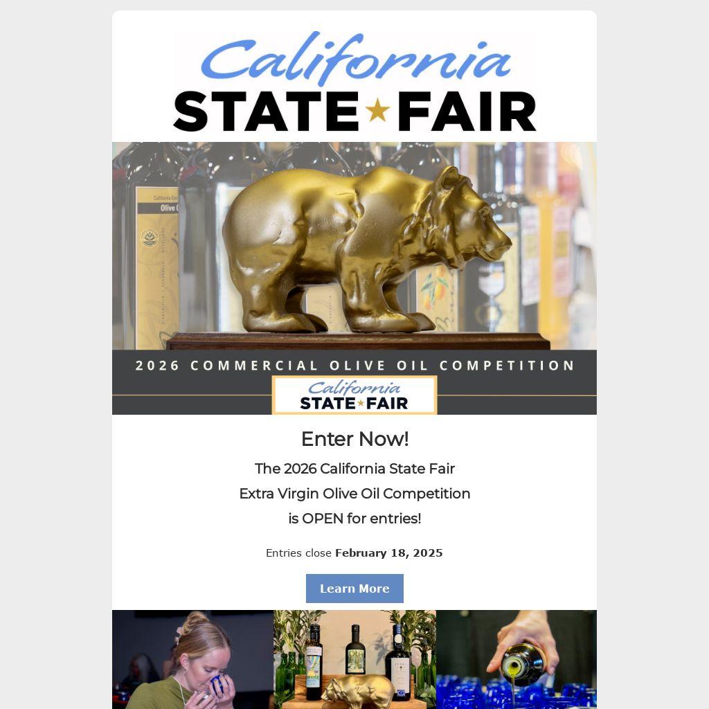 Extra Virgin Olive Oil Competition is OPEN for entries!