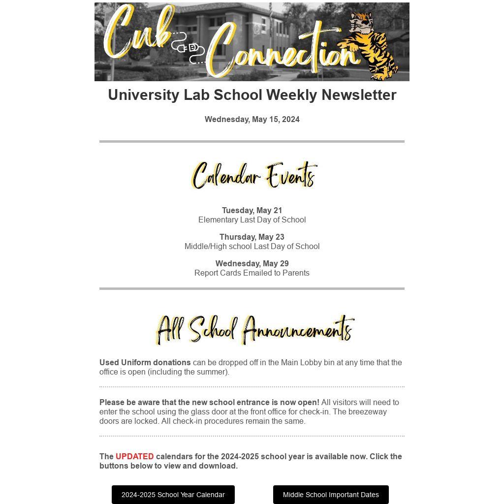 University Lab School Weekly Newsletter |