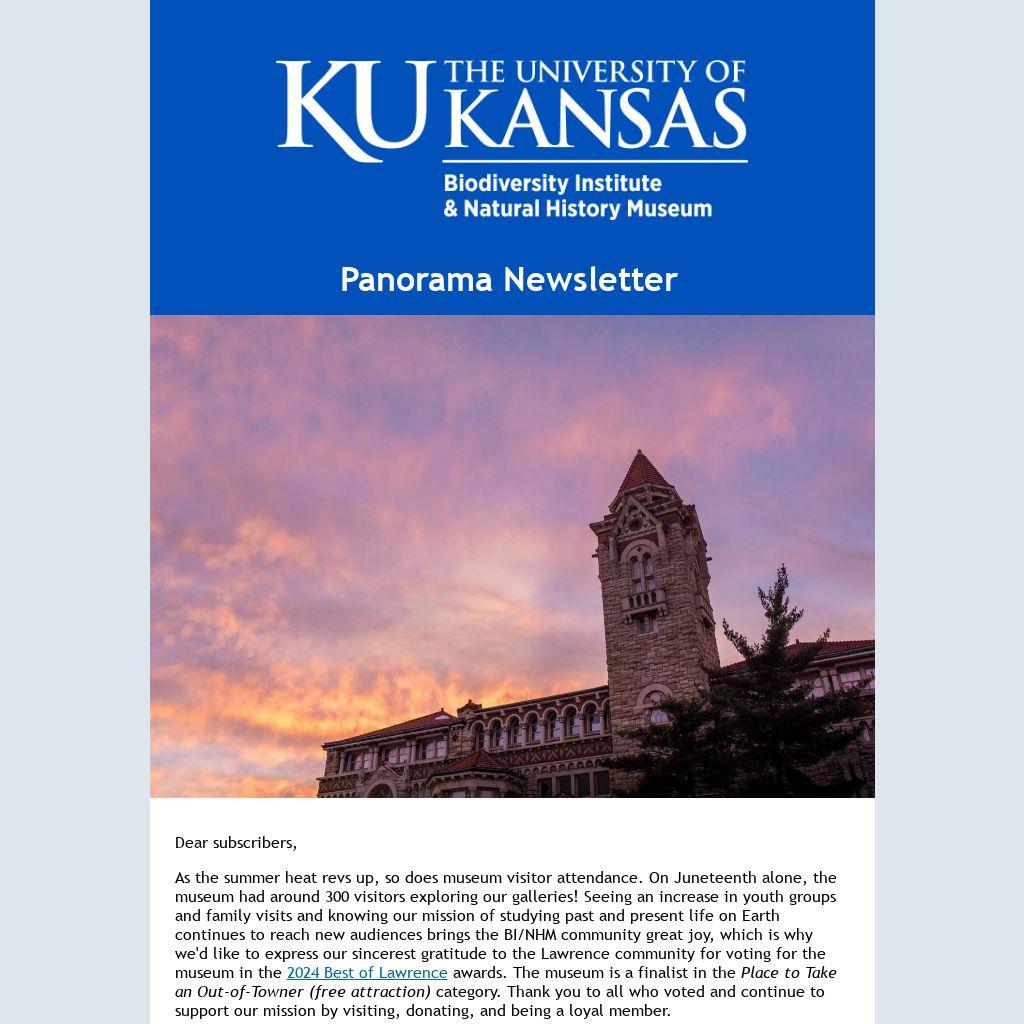 As the summer heat revs up, so does museum visitor attendance. On Juneteenth alone, the museum had around 300 visitors exploring our galleries! Seeing an increase in youth groups and family visits and knowing our mission of studying past and present life on Earth continues to reach new audiences brings the BI/NHM community great joy, which is why we'd like to express our sincerest gratitude to the Lawrence community for voting for the museum in the 2024 Best of Lawrence awards. The museum is a finalist in the Place to Take an Out-of-Towner (free attraction) category. Thank you to all who voted and continue to support our mission by visiting, donating, and being a loyal member.