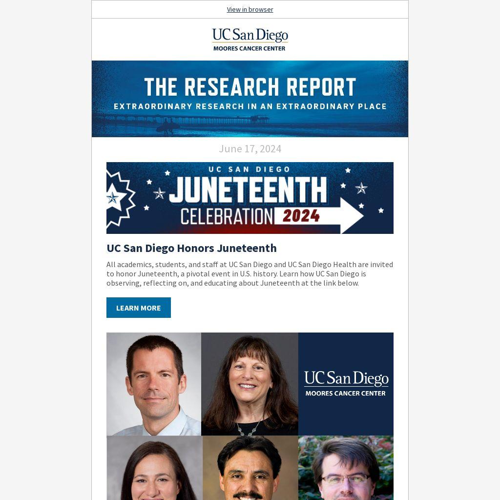 All academics, students, and staff at UC San Diego and UC San Diego Health are invited to honor Juneteenth, a pivotal event in U.S. history. Learn how UC San Diego is observing, reflecting on, and educating about Juneteenth at the link below.