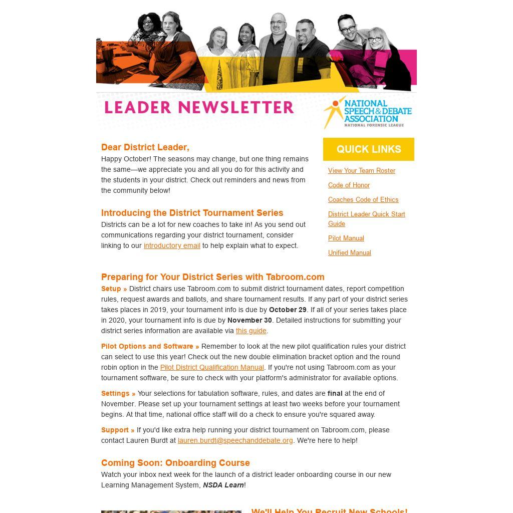 We would like to get better acquainted with non-member schools in your district! Submit a list of non-member schools, including the name and mailing address of the speech and debate program advisor (email address optional) by October 30, and we will ensure those individuals receive Rostrum and some materials about NSDA membership for the rest of the school year.