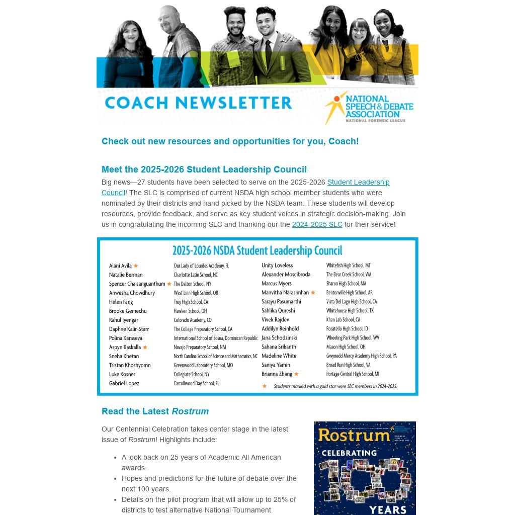 DUE MAY 2: Membership Survey Feedback: Our membership survey helps shape our priorities for the coming school year and influences the resources, recognition, and competitive opportunities we offer. In 15 minutes, you can have your voice heard and enter to win. Three high school programs and three middle school programs will be randomly selected from all complete surveys submitted by Friday, May 2, at 11:59 p.m. CT to win free a free school membership for 2025-2026. If you are eligible to participate in our survey, you would have received an email on April 7 from info@speechanddebate.org via SurveyMonkey with the subject line Response Requested: 2025 NSDA Membership and Resource Survey.
