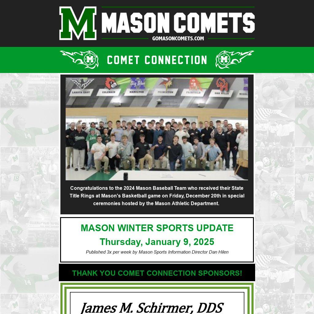 On Monday, 12/30 Mason fell at Kings by a score of 71-62. The Comets got a big game from Brycen Johnson who scored 35 in the losing effort. Jacob Lupinski added 10.