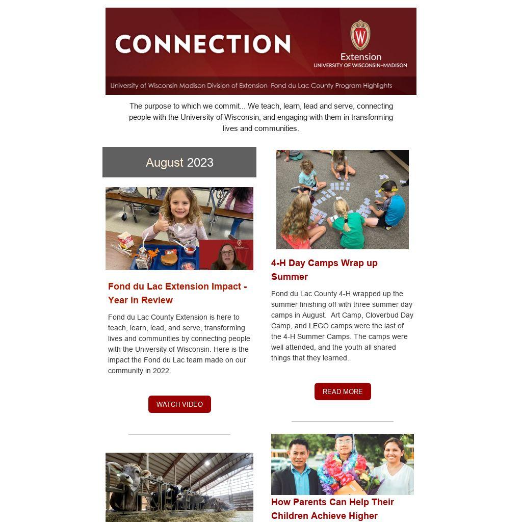 Fond du Lac County Extension is here to teach, learn, lead, and serve, transforming lives and communities by connecting people with the University of Wisconsin. Here is the impact the Fond du Lac team made on our community in 2022.