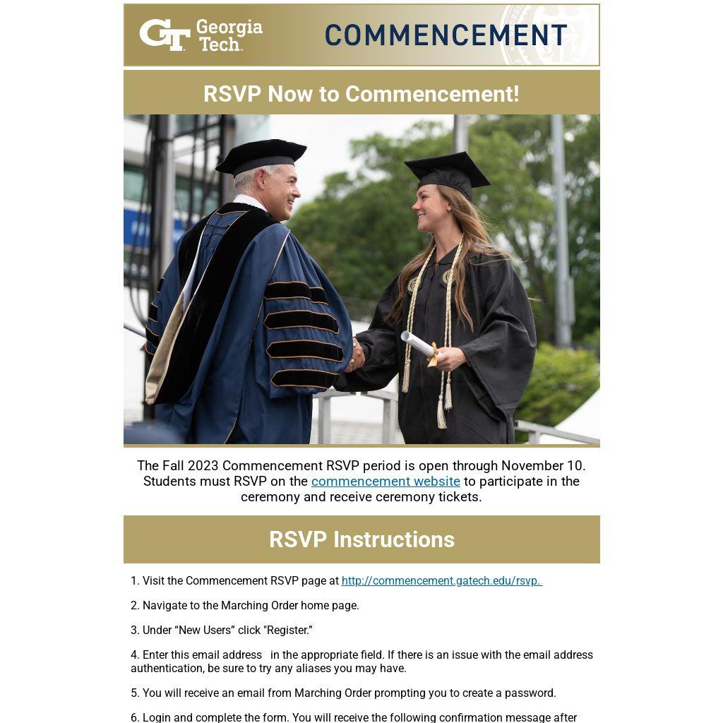 The Fall 2023 Commencement RSVP period is open through November 10.