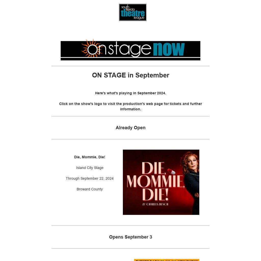 This email blast and other programs of the South Florida Theatre League are made possible with the support of Miami-Dade County Department of Cultural Affairs and the Cultural Affairs Council, the Miami-Dade County Mayor and Board of County Commissioners.