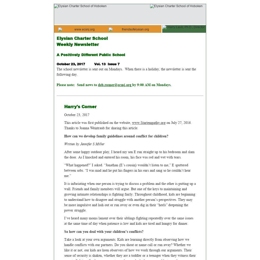 The school newsletter is sent out on Mondays. When there is a holiday, the newsletter is sent the following day.