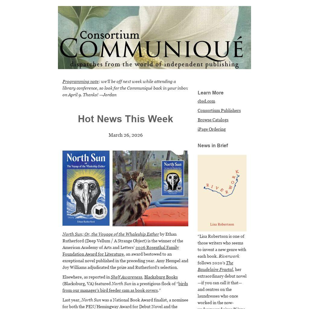 | Programming note: we’ll be off next week while attending a library conference, so look for the Communiqué back in your inbox on April 9. Thanks! —Jordan