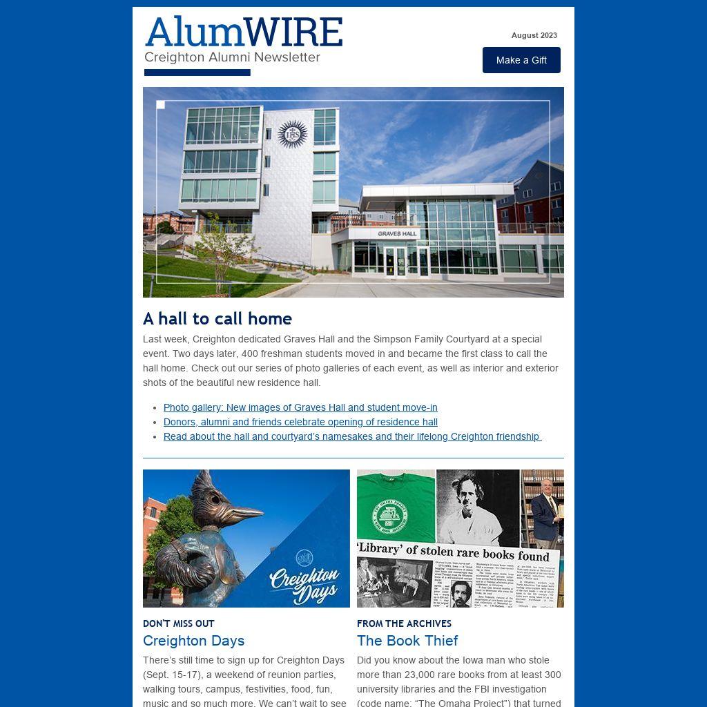 There’s still time to sign up for Creighton Days (Sept. 15-17), a weekend of reunion parties, walking tours, campus, festivities, food, fun, music and so much more. We can’t wait to see everyone!