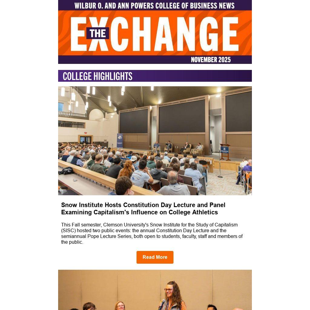 This Fall semester, Clemson University's Snow Institute for the Study of Capitalism (SISC) hosted two public events: the annual Constitution Day Lecture and the semiannual Pope Lecture Series, both open to students, faculty, staff and members of the public.