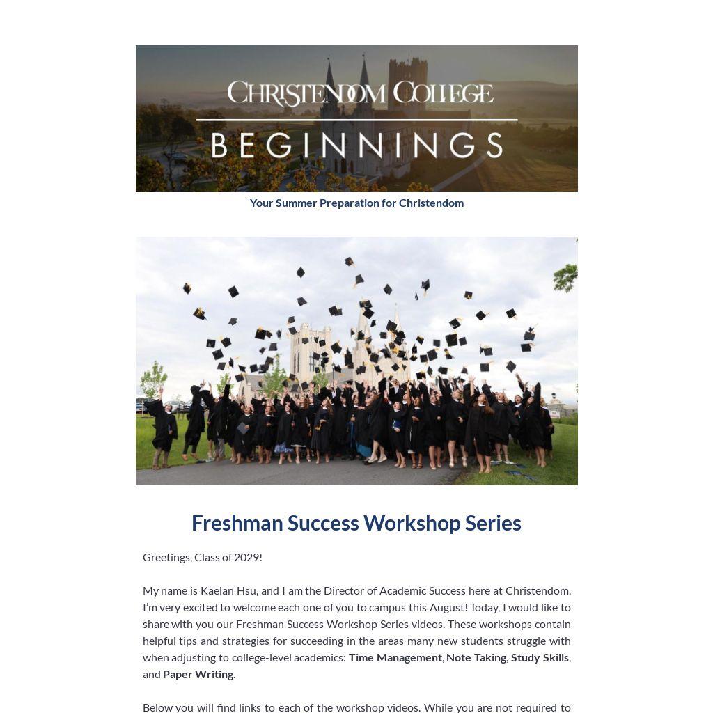 Know that you are in my prayers this summer as you prepare for college, and please don’t hesitate to let me know if you have any questions about our academic resources or how we can support you throughout your time at Christendom. See you soon!
