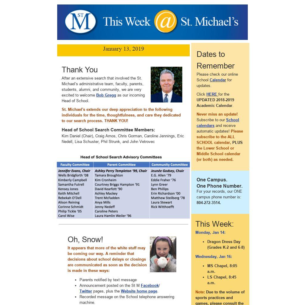 Current and past issues of "This Week at St. Michael's" are now archived on our website under " News and Events," as well as under " Community."