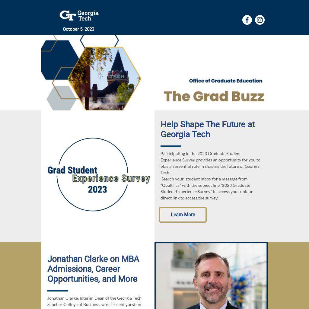 Participating in the 2023 Graduate Student Experience Survey provides an opportunity for you to play an essential role in shaping the future of Georgia Tech.