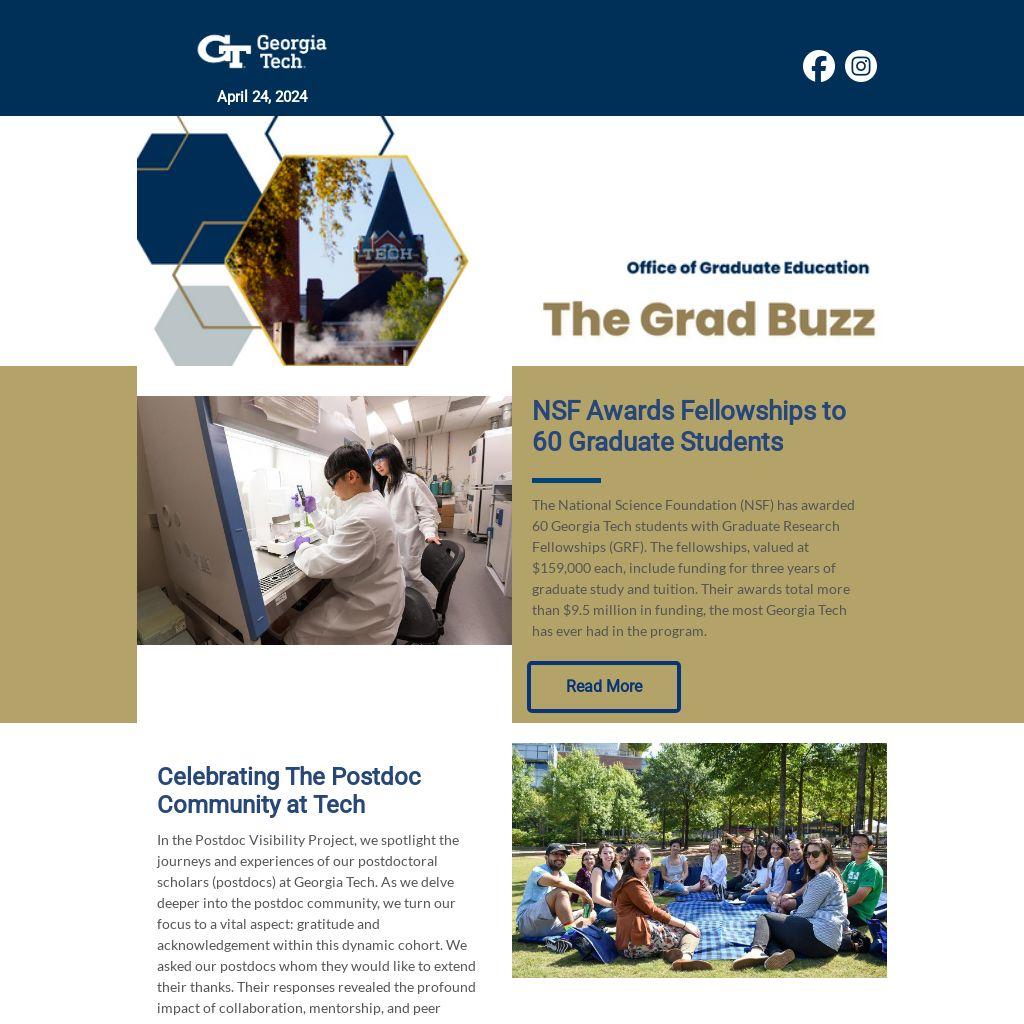 The National Science Foundation (NSF) has awarded 60 Georgia Tech students with Graduate Research Fellowships (GRF). The fellowships, valued at $159,000 each, include funding for three years of graduate study and tuition. Their awards total more than $9.5 million in funding, the most Georgia Tech has ever had in the program.