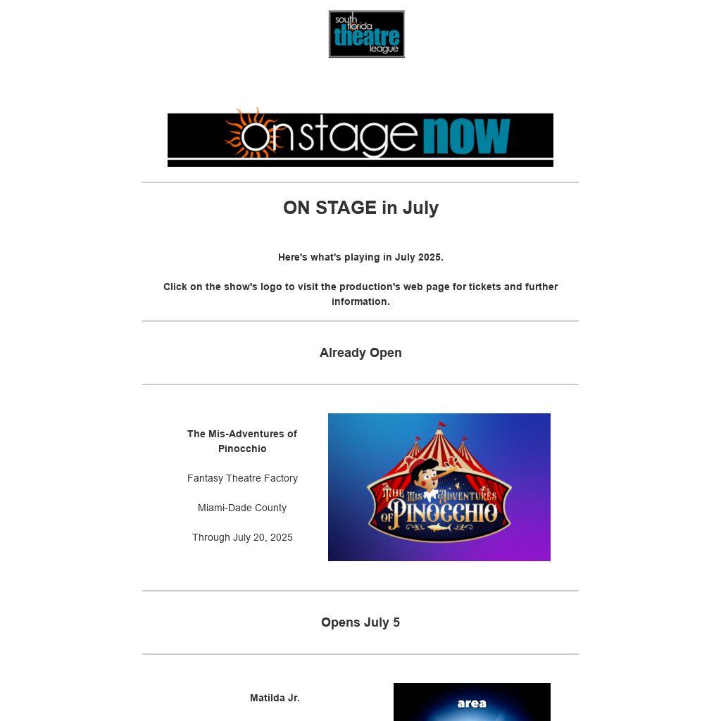 This email blast and other programs of the South Florida Theatre League are made possible with the support of Miami-Dade County Department of Cultural Affairs and the Cultural Affairs Council, the Miami-Dade County Mayor and Board of County Commissioners.