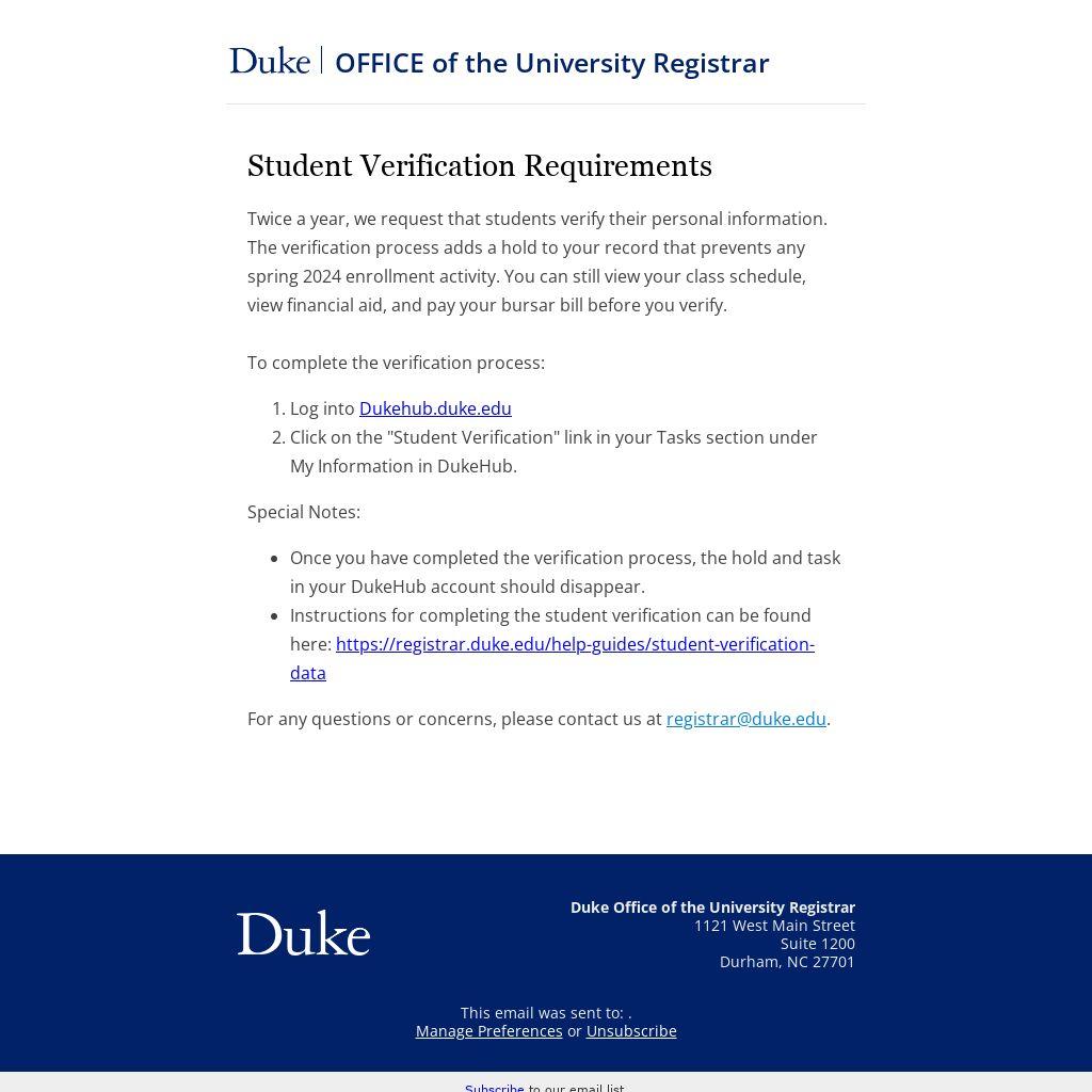 - Click on the "Student Verification" link in your Tasks section under My Information in DukeHub.