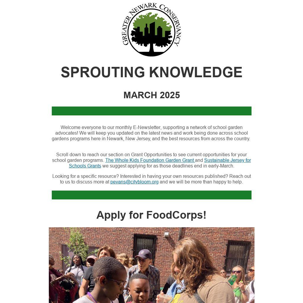 Welcome everyone to our monthly E-Newsletter, supporting a network of school garden advocates! We will keep you updated on the latest news and work being done across school gardens programs here in Newark, New Jersey, and the best resources from across the country.